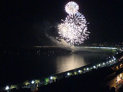 une soirée feu d'artifice sur la terrasse de l'école du Château qui domine Rauba-Capèu. Une soirée parfaite. Au moment où les premières fusées partaient du milieu de la baie des anges, on a entendu diffuser la Marseillaise. Comme ça faisait longtemps que je n'avais pas assisté au feu d'artifice, j'ai demandé à Christian si c'était habituel, il m'a répondu que non, que c'était la première fois.